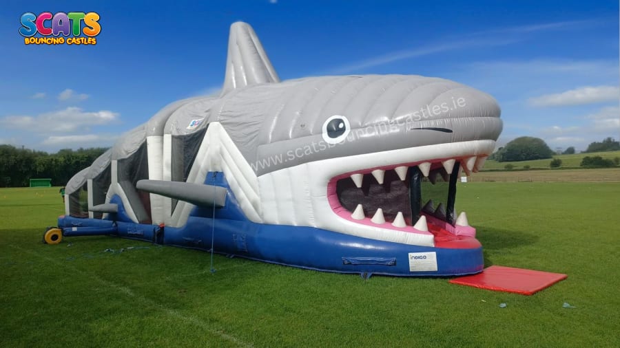 Prepare to be amazed as you watch the excitement unfold on the faces of children as they enter the gaping jaws of this magnificent shark and journey through its thrilling obstacles!