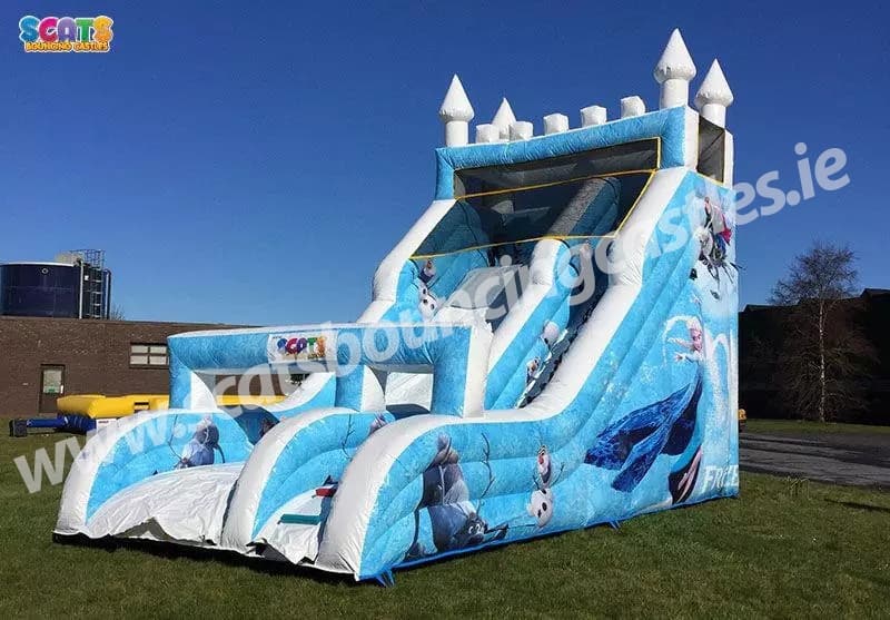Wow, check out our spectacular Frozen slide! Brand New to Scats Bouncing Castles and by popular demand, our Frozen Slide will be a hit especially with all the girls out there. It is very impressive with Disney Frozen artwork digitally printed on its walls. Kids are going to love sliding down and climbing up with Olaf, Anna, Elsa and many more Frozen characters. It has a safety netting provided to prevent any messing! Check out our delivery areas and book now to avoid disappointment!