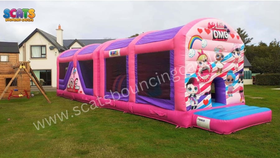 Check out our super cute LOL DOLL HOUSE Obstacle House. It has a beautiful pink & purple design with digital print images of the popular LOL Dolls!!