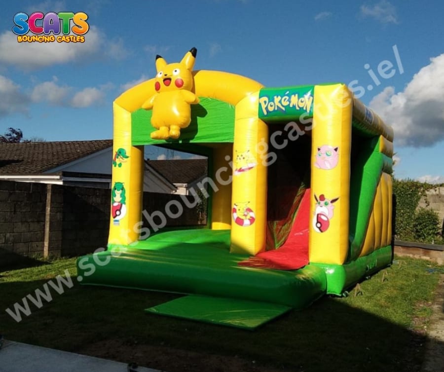 Brand New to Scats Bouncing Castles in 2018! Check out our fantastic 3 in 1 Pikachu Combi unit . This combi unit has a generous Bouncing area, Slide & a Basketball Hoop. It is digitally printed with images of Pikachu. This will be a huge hit with all Pokemon fans & both boys & girls of all ages.