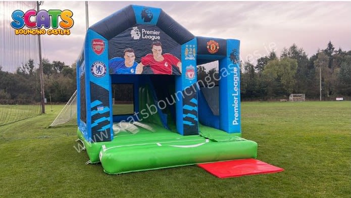 Brand New to Scats Bouncing Castles. Check out our fantastic 3 in 1 Premier League Combi unit . This combi unit has a generous Bouncing area, Slide & a Basketball Hoop. It is digitally printed with images of all the top soccer teams. This will be a huge hit with all soccer fans. Suitable for boys & girls of all ages.