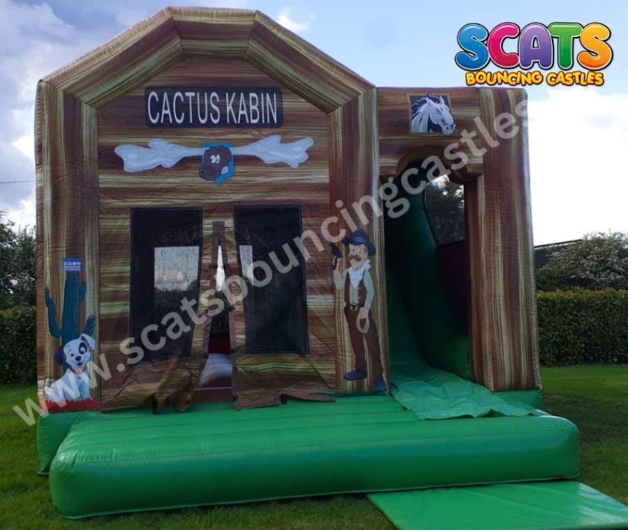 The Cactus Kabin themed combi unit has a bouncy castle which consists of a large bouncy area, a slide to the side. It is suitable for 2 years up and has supervised netting all round so you can keep an eye out on the kids. This unit is fully covered, so don't worry about the rain! This castle will guarantee your party will be a success. It is suitable for girls and boys.