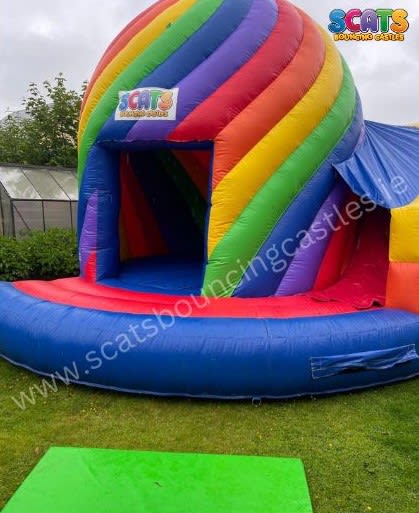 Booking online is quick and easy—just a few clicks of the mouse and you're all set for an unforgettable party! If you have any questions or need assistance, don't hesitate to give us a call at +353-87-6764279. Let's make your party a hit with our Rainbow Bubble Combi from Scats Bouncing Castles!