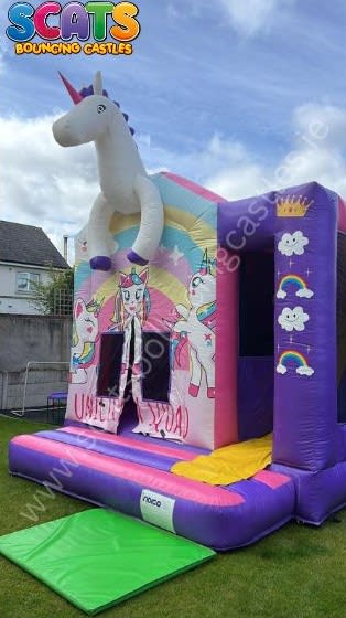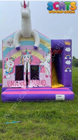 This magical unit features a spacious bouncy castle area and a slide to the side, adorned with captivating digital prints of a majestic Unicorn at the forefront. Suitable for children aged 2 and up, it boasts supervised netting all around, ensuring a safe and secure play environment. Plus, with its full coverage, there's no need to fret about the weather dampening the festivities!
