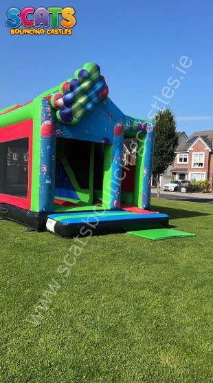 Introducing our exciting new addition to Scats Bouncing Castles—the Balloon themed combi unit! Bursting with vibrant energy, this unit features a spacious bouncy area and a slide to double the fun. With its funky graffiti-style design digitally printed, it's sure to ignite imaginations and delight partygoers of all ages.