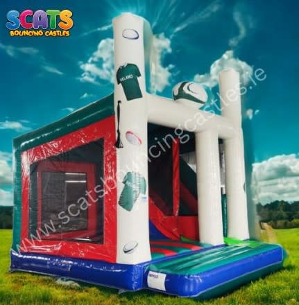 Introducing our brand new Rugby combi unit, a delightful addition to Scats Bouncing Castles! Featuring a prominent Rugby theme for all the Rugby Fans out there!