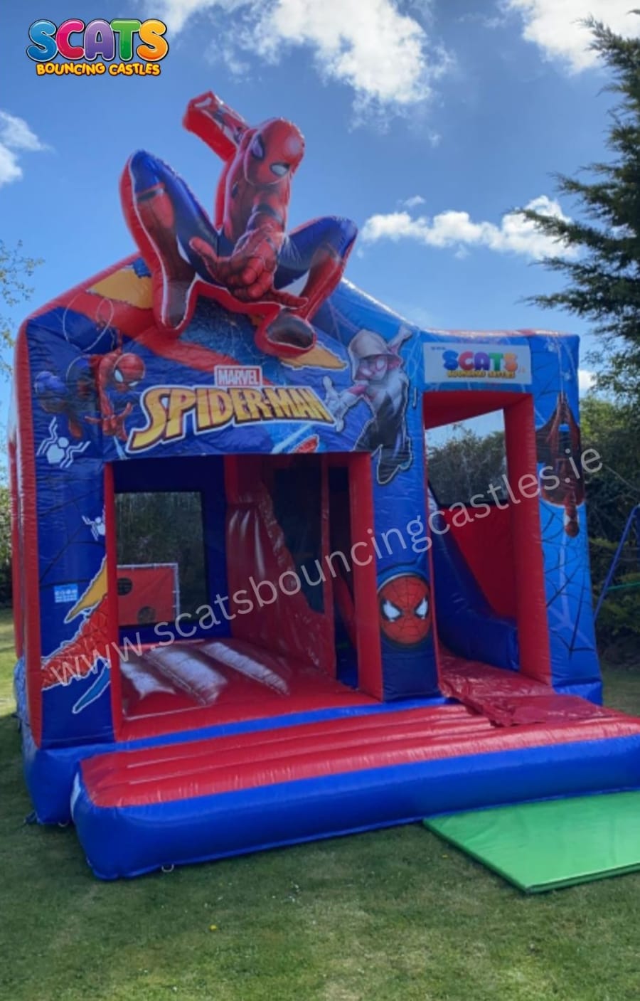 Size: 18ft L x 15ft W x 14ft H The Spider man themed combi unit will mix it up a little this year at Scats Bouncing Castles. This fun unit is suitable for both boys and girls and is very popular with our customers. Both the bouncing area and slide to the side are fully enclosed which means even those frequent Irish rain showers don't spoil the fun. It also has a basketball hoop for an extra bit of entertainment. Its is going to be great for any occasion, from birthday parties to big corporate events.