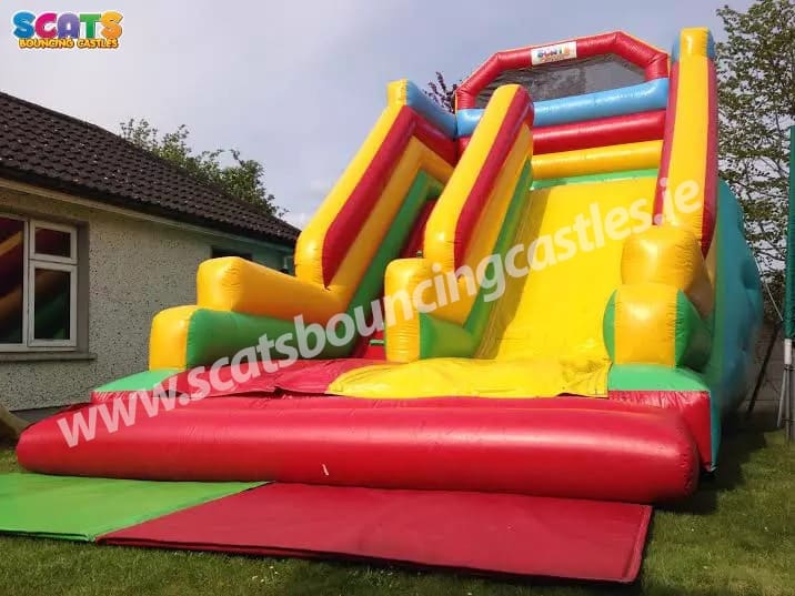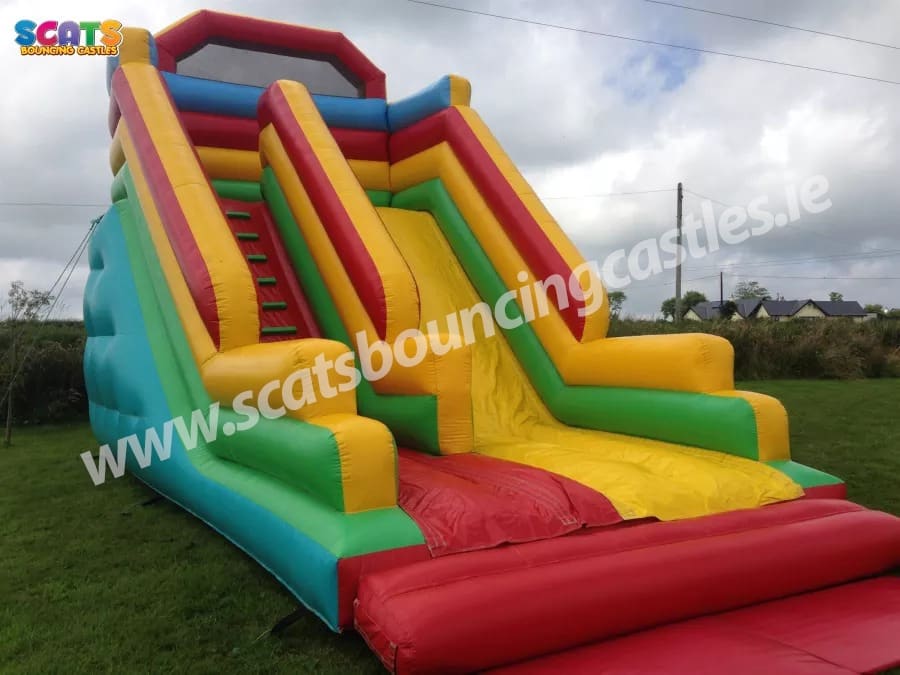 This is a 19ft Super slide fitted with safety netting and high walls at the top of the slide and a long landing area. This is a huge hit with children of all ages, but can be also enjoyed by adults! The colors are very eye catching and will brighten up any dull day! No matter what even you are planning, you can't go wrong with Wexford Bouncy Castles! We offer the largest selection of inflatables for reasonable prices! Our team have an experience of more than 20 years, so you can be sure that nothing will go wrong on your special day!